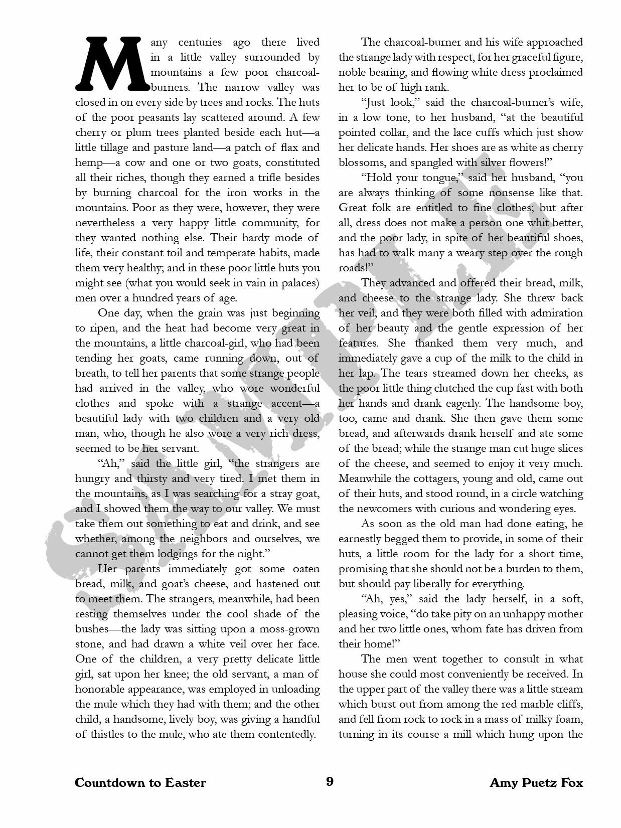 The delightful stories in this book were written in the 1800s and early 1900s. Many of these stories have not been reprinted for many years and are just waiting to be rediscovered by a whole new generation. Countdown to Easter will appeal to a large age group, but children from 6-14 will probably enjoy it the most. The activities include: crafts, cooking, riddles, quizzes, singing hymns, games, and more. This book will help families grow closer together.